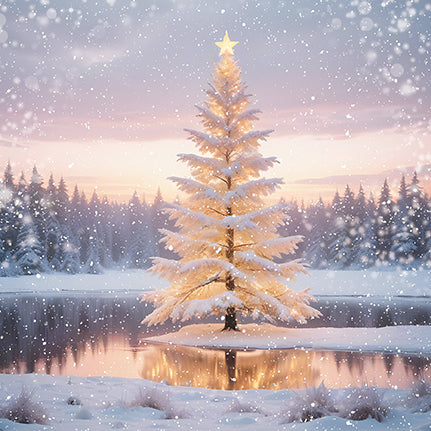 Tarjetas navideñas - 16 tarjetas de lujo - Escena de árbol de Navidad nevado y lago