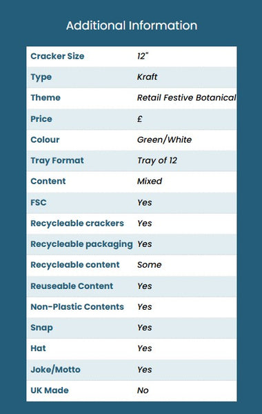 Christmas Crackers - 12 Eucalyptus 12 inch Deluxe Christmas Crackers