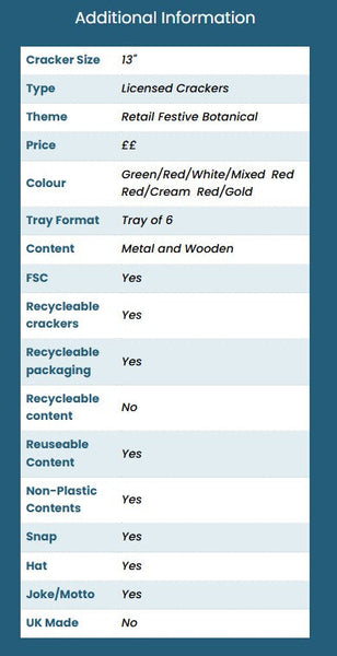 Christmas Crackers - 6 Red Festive Botanicals 13 inch Cracker