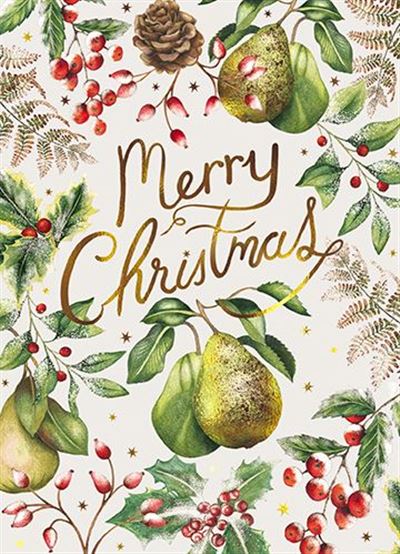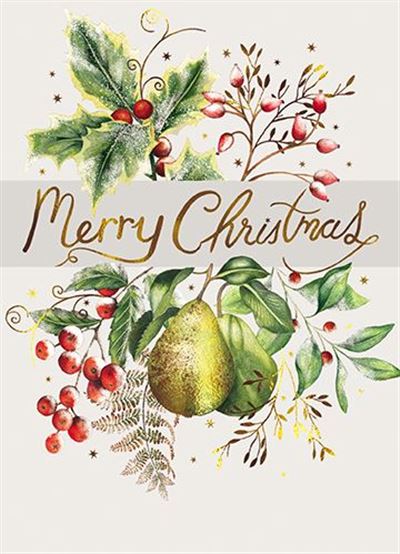Tarjetas navideñas - 8 tarjetas de lujo - Peras navideñas por todas partes, corona navideña de peras